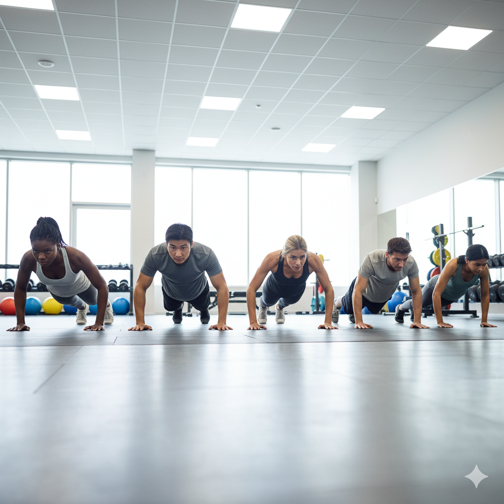 In this class, you will perform a wide range of foundational bodyweight movements like push-ups, pull-ups, and dips. We also incorporate advanced calisthenics and accessory work to maximize muscle growth and stability, including inverted rows, single-leg movements like pistol squats and Bulgarian split squats, and core work like planks and GHD Situps. Every movement is tailored to your fitness level, with regressions like knee pushups and progressions like decline pushups, ensuring that anyone can participate and be challenged.